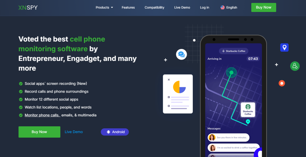 We liked how XNSPY structures device data into compliance-style logs that feel organized and documentation-ready. The system captures calls, SMS, app usage, and location data, then routes that information through secure Backend API access for dashboard display.
